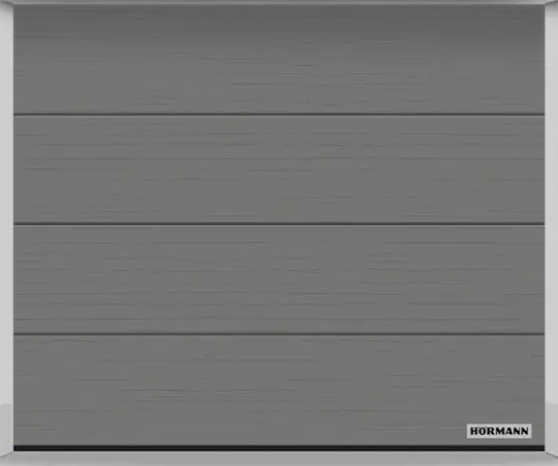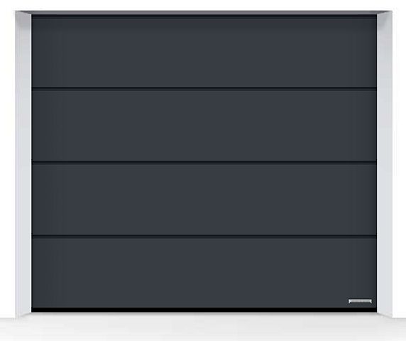 Nový hladký povrch Planar pro vrata s drážkou L v 6 exkluzivních barevných odstínech Hörmann Matt deluxe zaujme svou jemnou elegancí. (Obrázek vlevo: CH 703, Matt deluxe, antracitová metalická)
